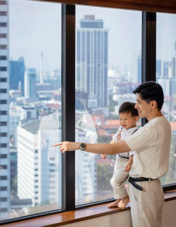 Hotel Indonesia Kempinski menawarkan pengalaman menginap yang ikonik dan elegan. Terletak tepat di depan Bundaran HI, hotel ini memiliki banyak kamar dengan pemandangan Bundaran HI yang menakjubkan. Kempinski juga terhubung langsung dengan Grand Indonesia, sehingga kamu dan keluarga bisa berbelanja, makan, atau sekadar jalan-jalan tanpa repot. Dengan fasilitas premium seperti kolam renang rooftop, spa, restoran internasional, dan area bermain anak, hotel ini menjadi pilihan sempurna untuk liburan sekolah. Semua kebutuhan—makanan, hiburan, belanja, dan spot foto keluarga—ada dalam satu area, membuat pengalaman staycation lebih menyenangkan.